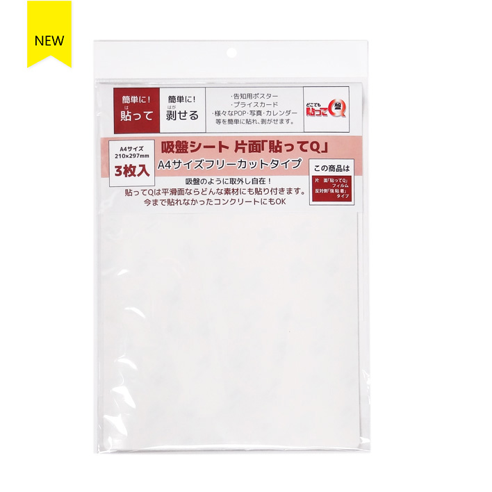 クロネコゆうパケット対象品です貼って剥せるマイクロ吸盤シート「貼ってQ」は粘着剤を使用していない吸盤タイプのフィルムです。失敗しても誰でも簡単に貼り直しができ、不要になったら誰でも簡単に剥がすことができる、吸盤の様な取外し自在なフィルムです。(両面に使用)
